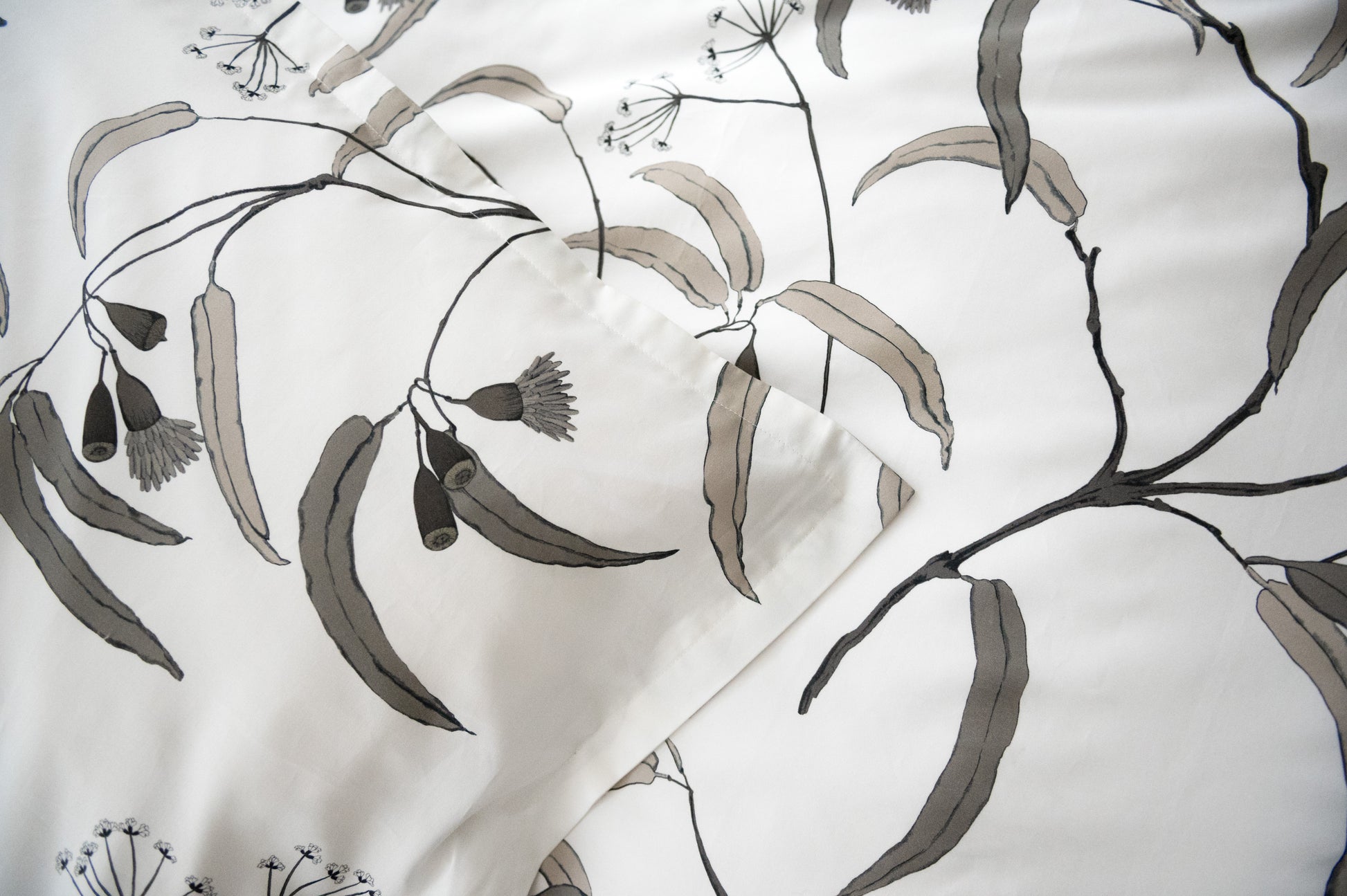 Cordao brings quiet elegance to the bedroom with a refined botanical design that feels both modern and timeless. Subtle shades of grey and earth-inspired tones create a soothing palette, inviting nature’s calm indoors.