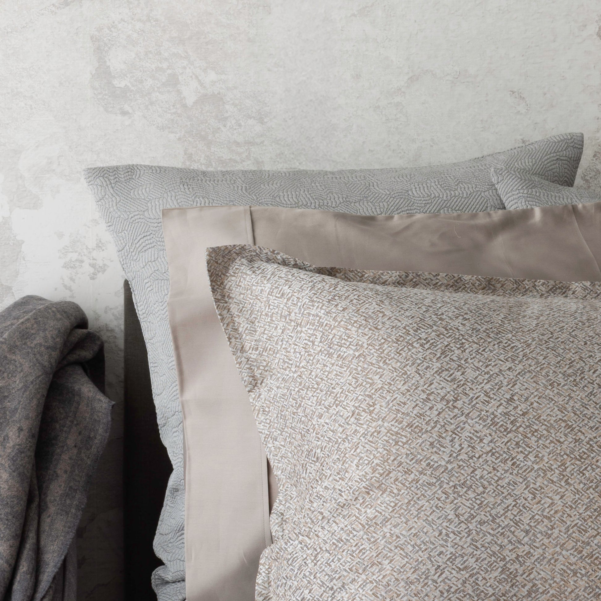 The balance of handsome elegance. Rio showcases a sophisticated crosshatch design woven with precision to reveal natural movement and subtle sheen. Its palette of soft neutrals and tonal hues brings texture and depth to the bedroom while maintaining a timeless sense of calm and refinement.